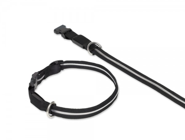 Unerlässlich in der dunklen Jahreszeit oder für das Ausführen des Hundes bei Nacht: Mit diesem Halsband kann Ihr Hund jederzeit gesehen werden – über eine Distanz bis zu 200 Metern! Das schwarze LED Halsband aus der Serie „StarLight“ ist ausgestattet mit roten Leuchtioden und einem reflektierenden Streifen. Die im Lieferumfang enthaltenen 3 V Lithium-Batterien bieten eine Leistung von bis zu 120 Stunden. Das Halsband ist aus Nylon gefertigt und unempfindlich gegen Schmutz und Erschütterung.